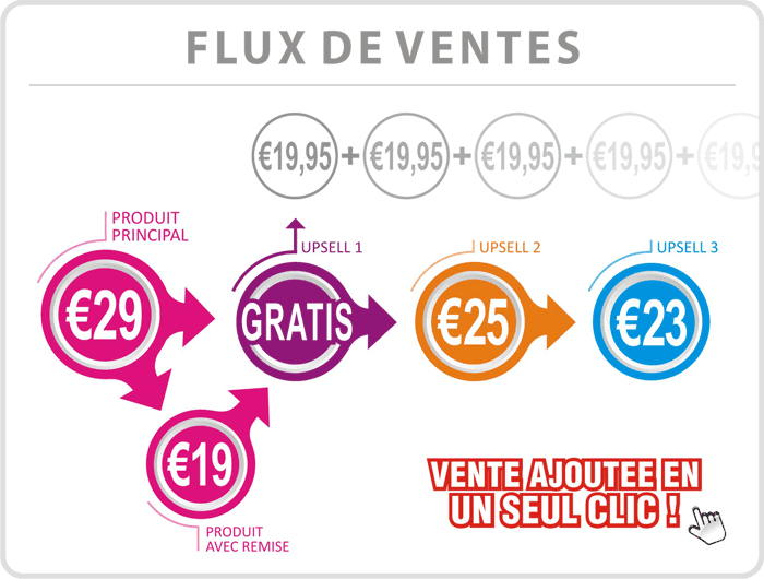 L'acheteur du produit principal peut acheter l'adhésion et 2 produits supplémentaires ! (vente en un clic).